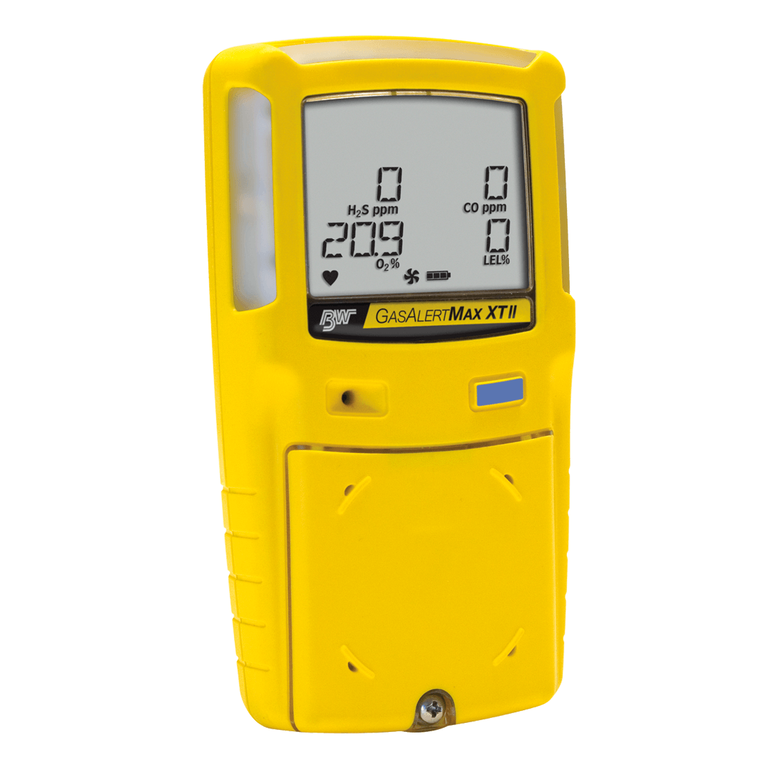 Gas Alert Max XT II - DL detects up to 4 gases simultaneously (Fuels, Oxygen, Sulphuric Acid, Carbon Monoxide). Version for data logging.It features: - It constantly shows the gas concentration on the display. - Full function self-test of sensor, battery status, circuit integrity and audio/visual alarms. - Integrated sampling pump with a 3 m hose. for gas detection in confined spaces. - Impact and water resistant casing. - Avanced microprocessors, and easily plug in/replaceable catalytic and electrochemical sensors. - Low, high, TWA (Time Weighted Average), - STEL (Short Term Exposure Limit) alarm for toxic gases and OL (Over Limit) alarm for combustible gases, low battery. - Acoustic (95dB), visual and vibrating alarm. - Rechargeable batteries. - Compact 13.1 x 7.0 x 5.2 cm. - Weight 328 g.