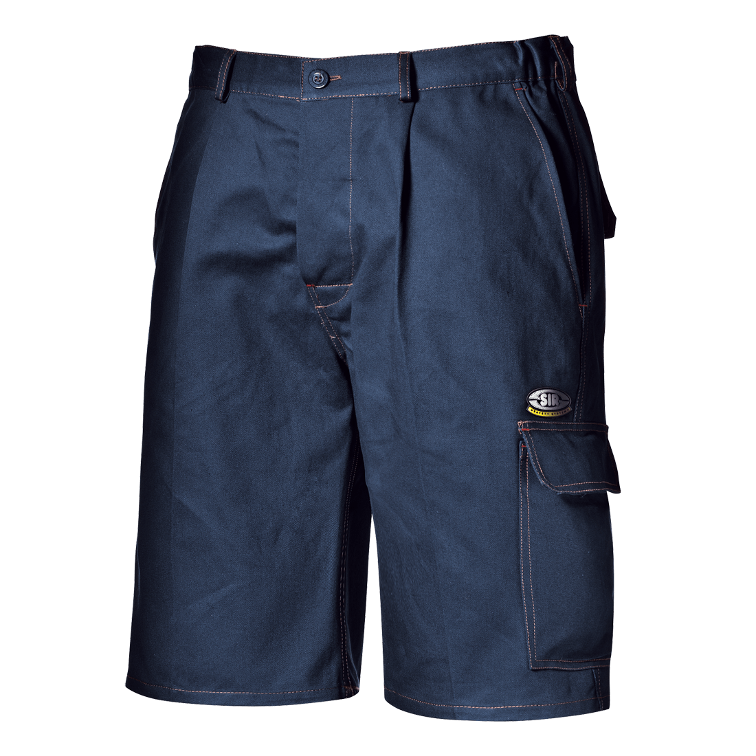 Bermuda made of 100% Massaua sanforized cotton 2/1, weight 280 g/m2. Fly with zip and button, two welt pockets, right ruler pocket, utility pocket with flap and Velcro with a pen holder on the left leg, back pockets with flap and Velcro closure, elastic waistband, triple seam on the outer leg.