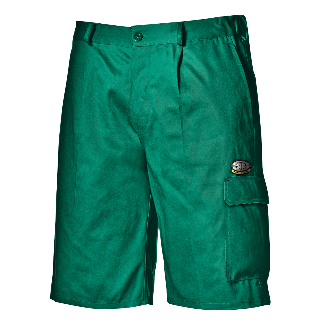 Bermuda shorts made of 100% Massaua sanforized cotton 2/1, weight 250 g/m2. Fly with zip and button, belt loops, two reinforced welt pockets, elastic waistband, right ruler pocket, left utility pocket with flap and Velcro closure and pen holder, back pockets with flap and Velcro closure and triple seam on the outer leg.