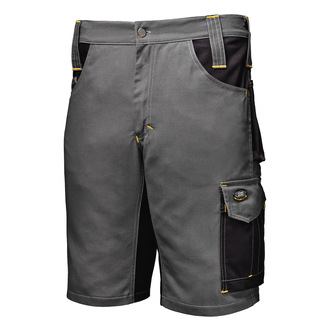 Bermuda in massaua 100% cotton fabric, weight 280 g/m2. Fly with zip and tack button, two welt pockets with coin pocket on right side, ruler pocket with tools holder on right leg, multi-functional utility pocket with flap and Velcro with pen holder and phone pocket on left leg, right back pocket with flap and Velcro, back left pocket with Velcro.