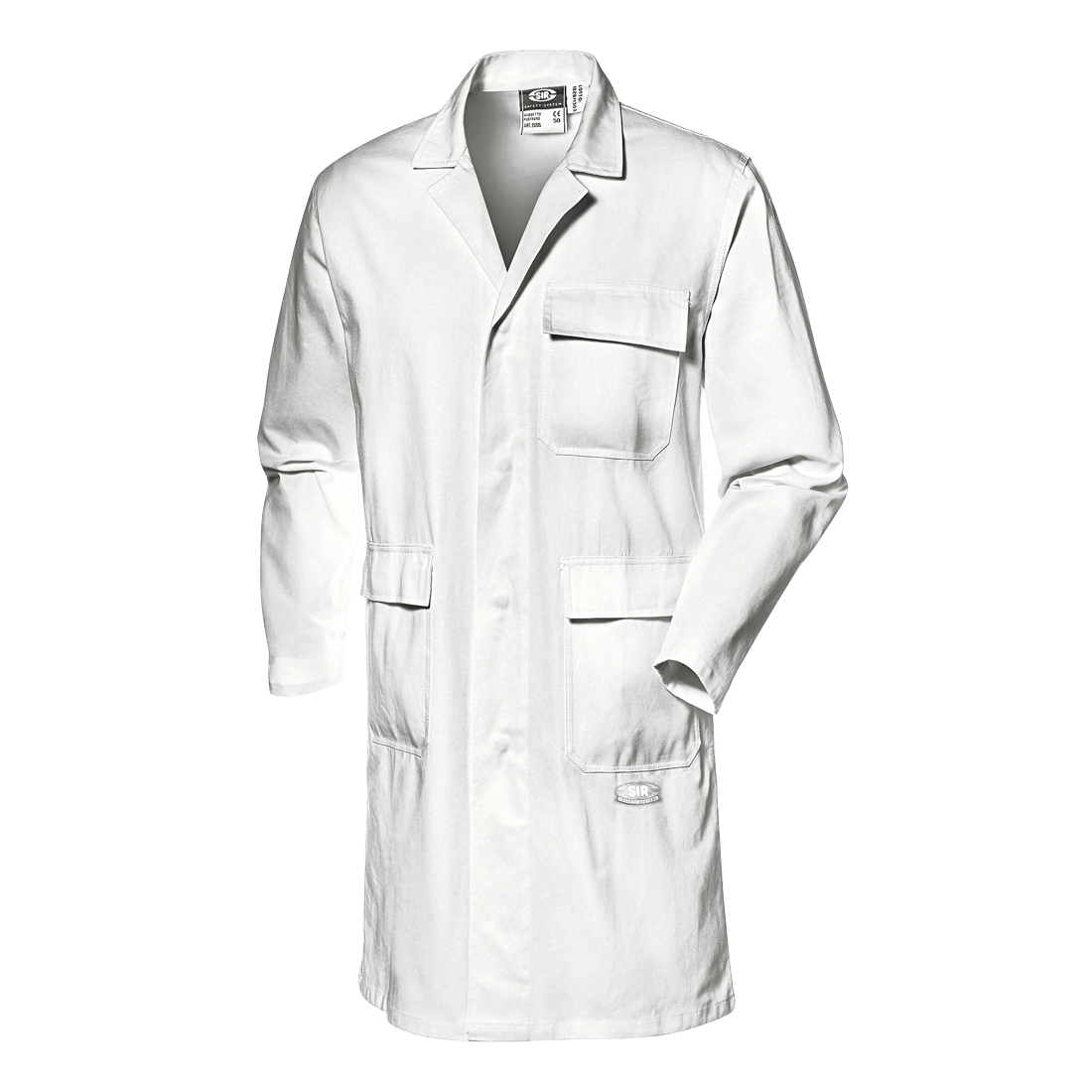 Coat made of 100% Massaua sanforized cotton 2/1, weight 260 g/m2 . Concealed closure with four metal buttons detectable by the metal detector, side pockets, chest pocket with flap and Velcro and double jointed stitched seams.