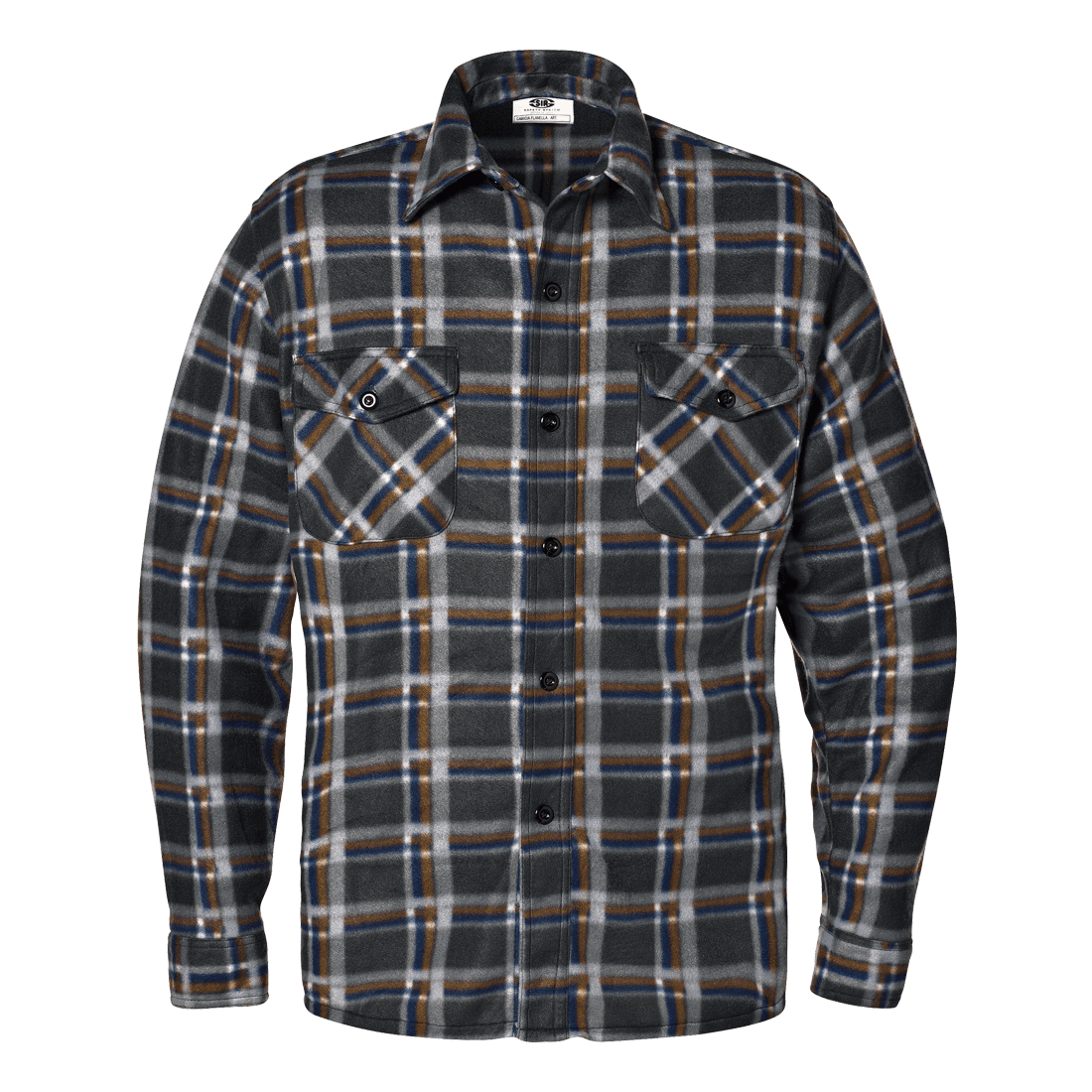Fleece shirt made of 100% polyester, 150 g/m2, long-sleeved with two small chest pockets with flap and button, buttoned cuffs.