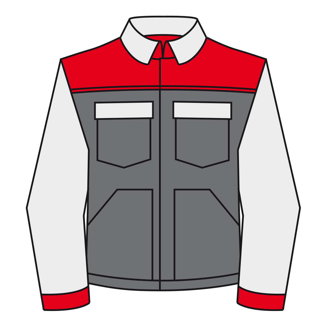 Short jacket made in Evolution fabric, 65% polyester and 35% cotton, weight 240 gr / m2, concealed six button closure, two chest pockets with flap and button closure, two muff pockets and buttoned cuffs; Jointed double seams. Tricolor model with piping on chest.