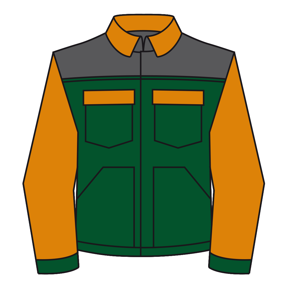 Short jacket made in Evolution fabric, 65% polyester and 35% cotton, weight 240 g/m2, concealed six button closure, two chest pockets with flap and button closure, two muff pockets and buttoned cuffs; jointed double seams. Tricolor model with piping on ches.