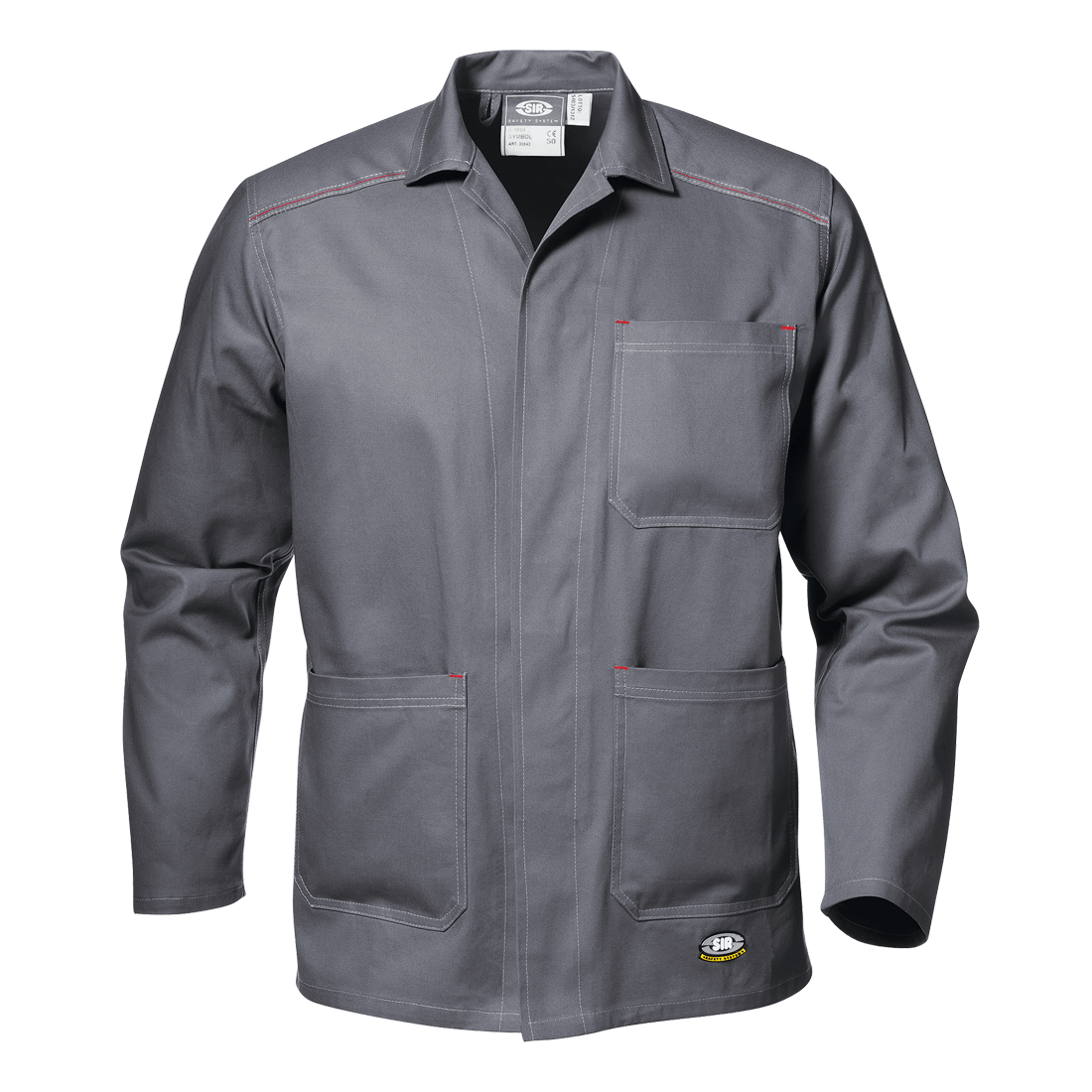 Jacket made of 100% Massaua sanforized cotton 2/1, weight 280 g/m2. Four button concealed closure, chest pocket, two side pockets and triple seams on the shoulders.