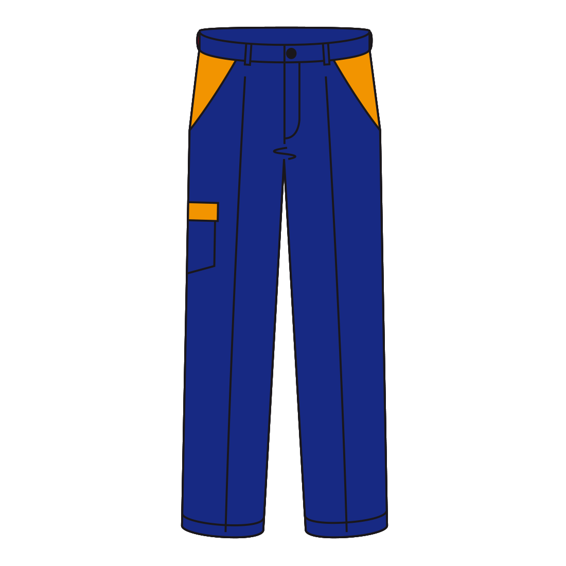 Trousers made in Evolution fabric, 65% polyester and 35% cotton, weight 240 g/m2, fly with zip and button, two welt pockets, back pocket with flap closure, utility pocket with flap and Velcro closure and wide belt loops. Jointed double seams. Bicolor model.
