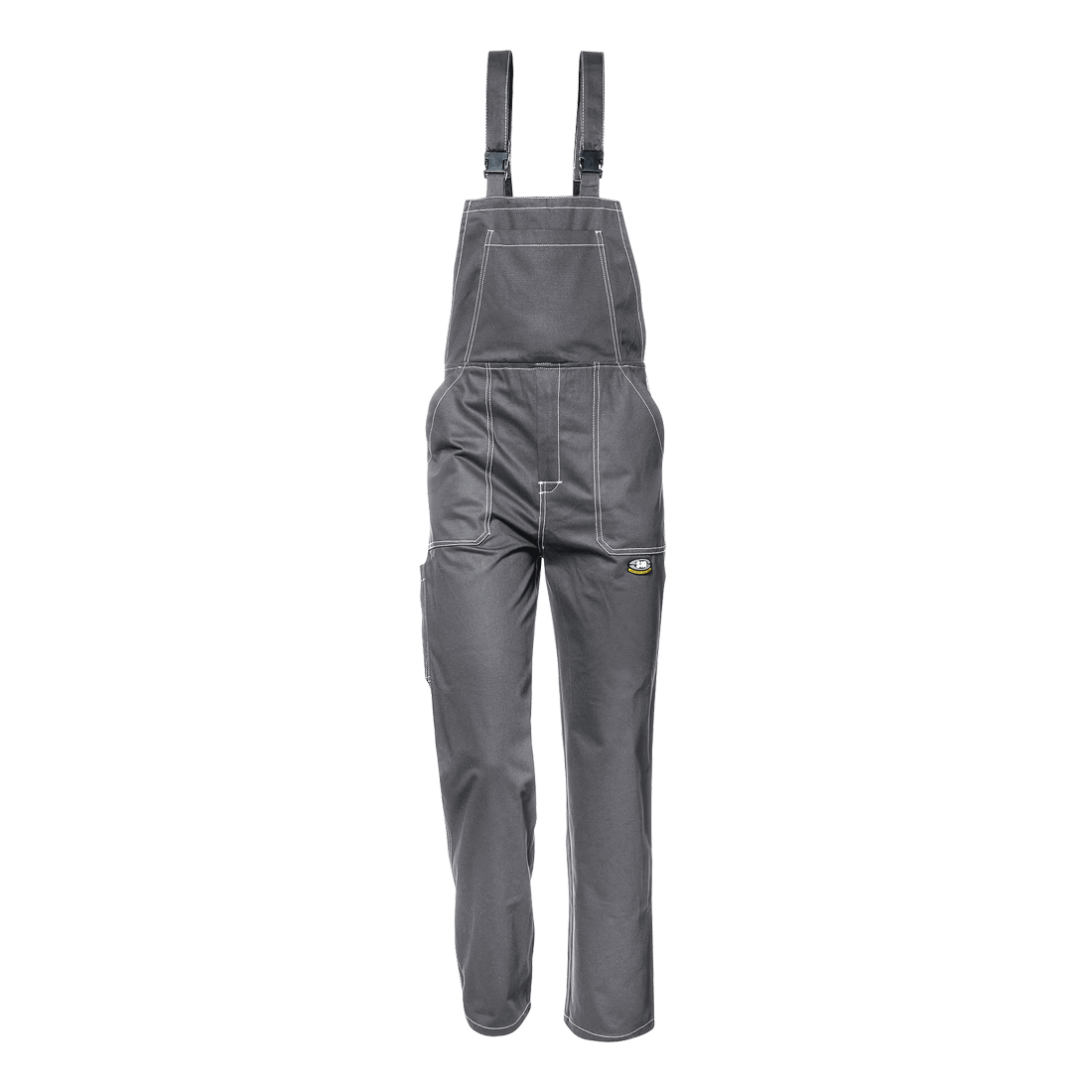 Bib-trousers in sanforized fustian 100% cotton, weight 350 g/m2.It features an adjustable shoulder straps with quick-fastening buckles, bib pocket, side pockets, ruler pocket on the right leg and back pocket with button closure, rear-bib, rear elastic waistband and double seams on the inner and outer leg.