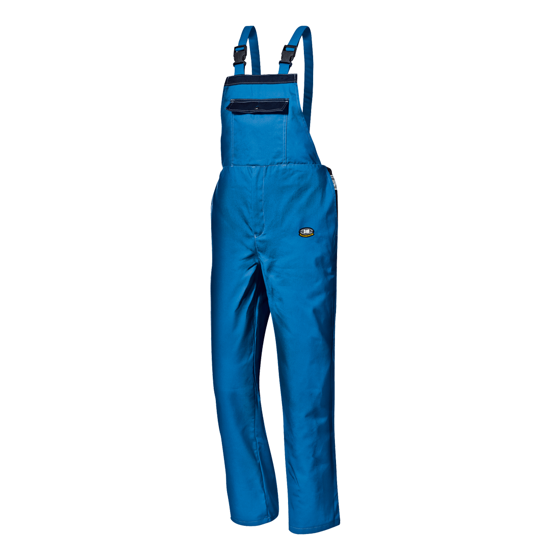 Bib-trousers made in Evolution fabric, 65% polyester and 35% cotton, weight 240 g/m2, adjustable elastic shoulder straps with quick-fastening buckles, bib pocket with flap and button closure, side pockets, back pocket with button closure, piping, rear-bib, back elastic waistband and side slits with button. Jointed double seams. Bicolor model.