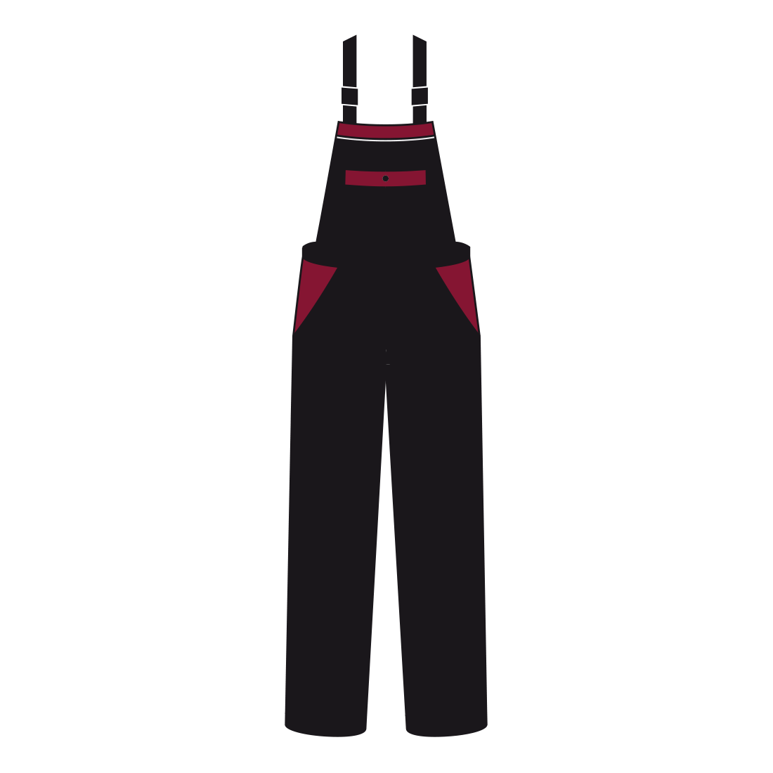 Bib-trousers made in Evolution fabric, 65% polyester and 35% cotton, weight 240 g/ m2, adjustable elastic shoulder straps with quick-fastening buckles, bib pocket with flap and button closure, side pockets, back pocket with button closure, piping, rear-bib, back elastic waistband and side slits with button. Jointed double seams. Bicolor model.