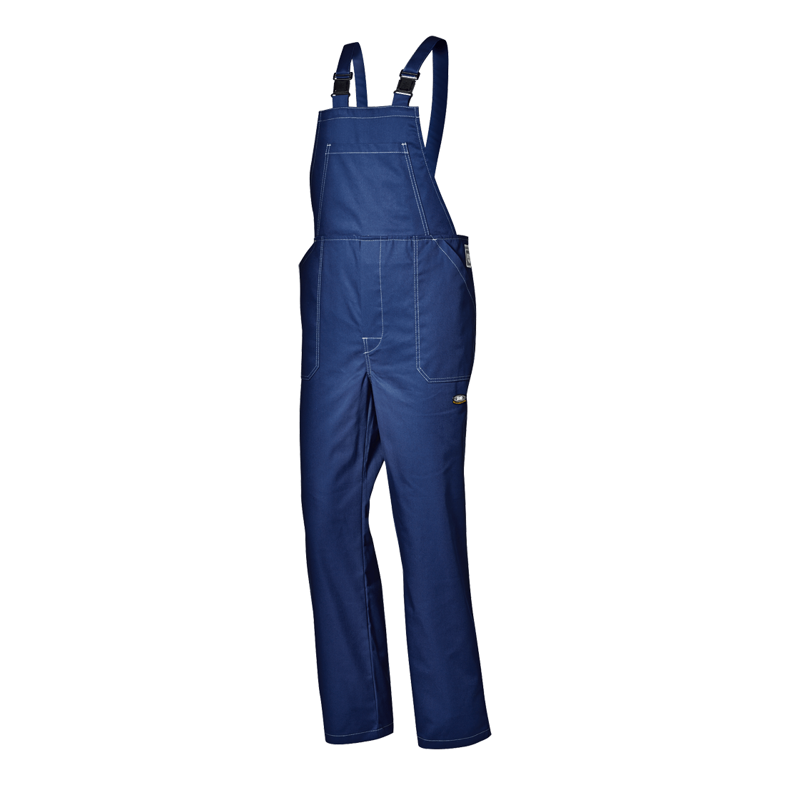 Bib-trousers made of Massaua 100% sanforized cotton 3/1, weight 280 g/m2. Adjustable shoulder straps with quick-fastening buckles, bib pocket, side pockets, back pocket with button closure, rear-bib and rear elastic waistband.