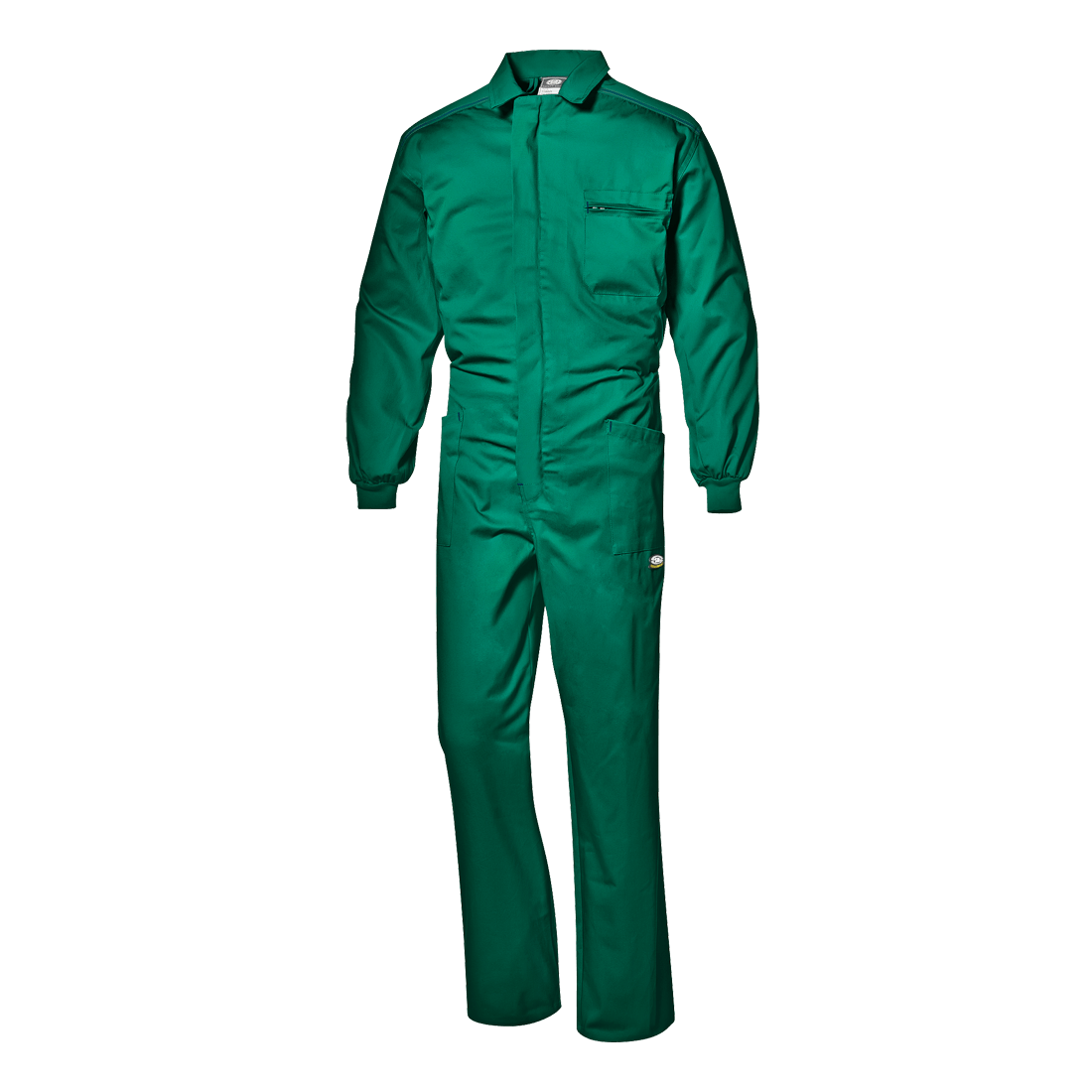 Coverall made of 100% Massaua sanforized cotton, weight 250 g/m2. Shirt collar, concealed two-way zipper closure, reinforced shoulders with triple seams, two patch side pockets, chest pocket with zipper closure, right ruler pocket, back pocket, elastic cuffs and rear elastic waistband.