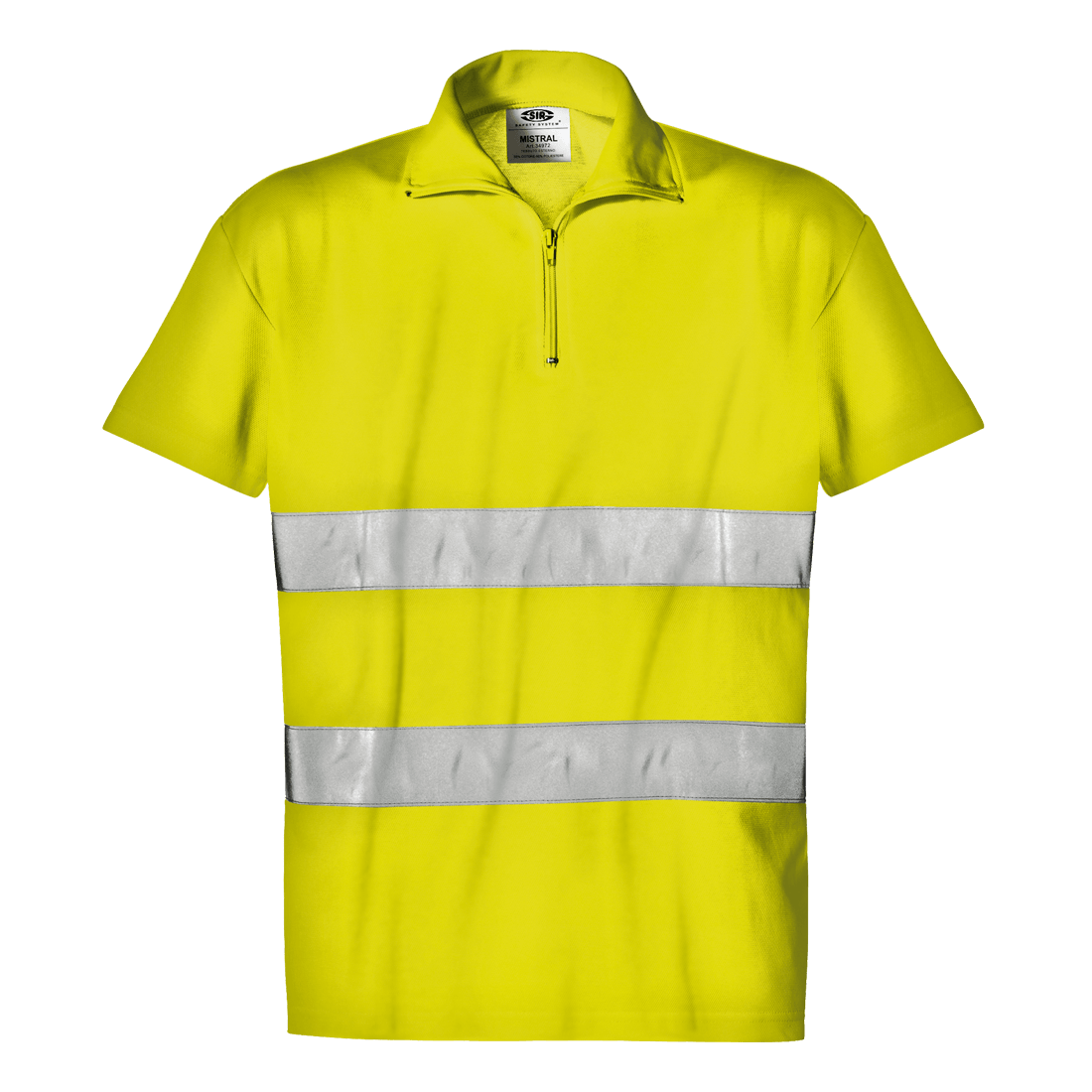 Polo with short sleeves in 50% polyester and 50% cotton, 220 g/m2, collar with zipper.