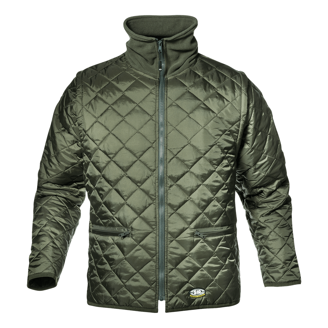 Jacket made in elastic and breathable nylon fabric, 160 g/m2 padding, sleeves detachable by zipper, central nylon zipper closure, high turtleneck collar in soft fleece fabric, two pockets with concealed zipper closure.