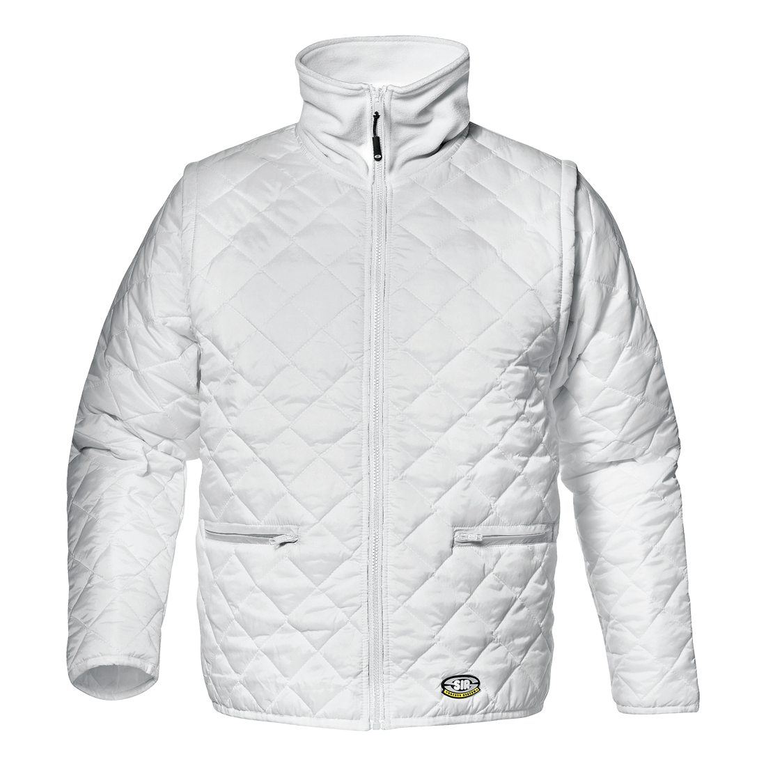 Jacket made in elastic and breathable nylon fabric, 160 g/m2 padding, sleeves detachable by zipper, central nylon zipper closure, high turtleneck collar in soft fleece fabric, two pockets with concealed zipper closure.