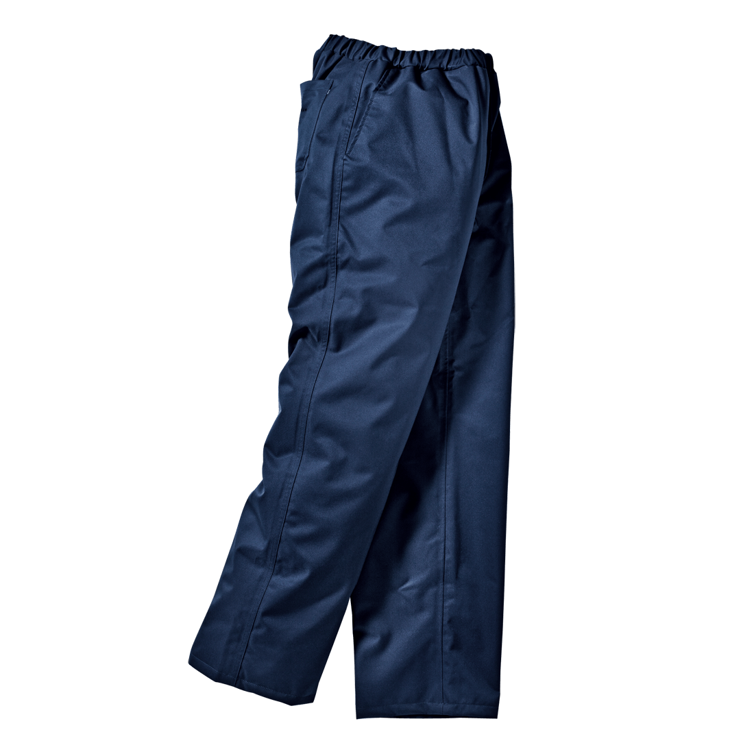 Trousers in Clipper-Tex fabric, waterproof and breathable, nylon lining; with elastic waistband, side welt pockets and rear pocket.