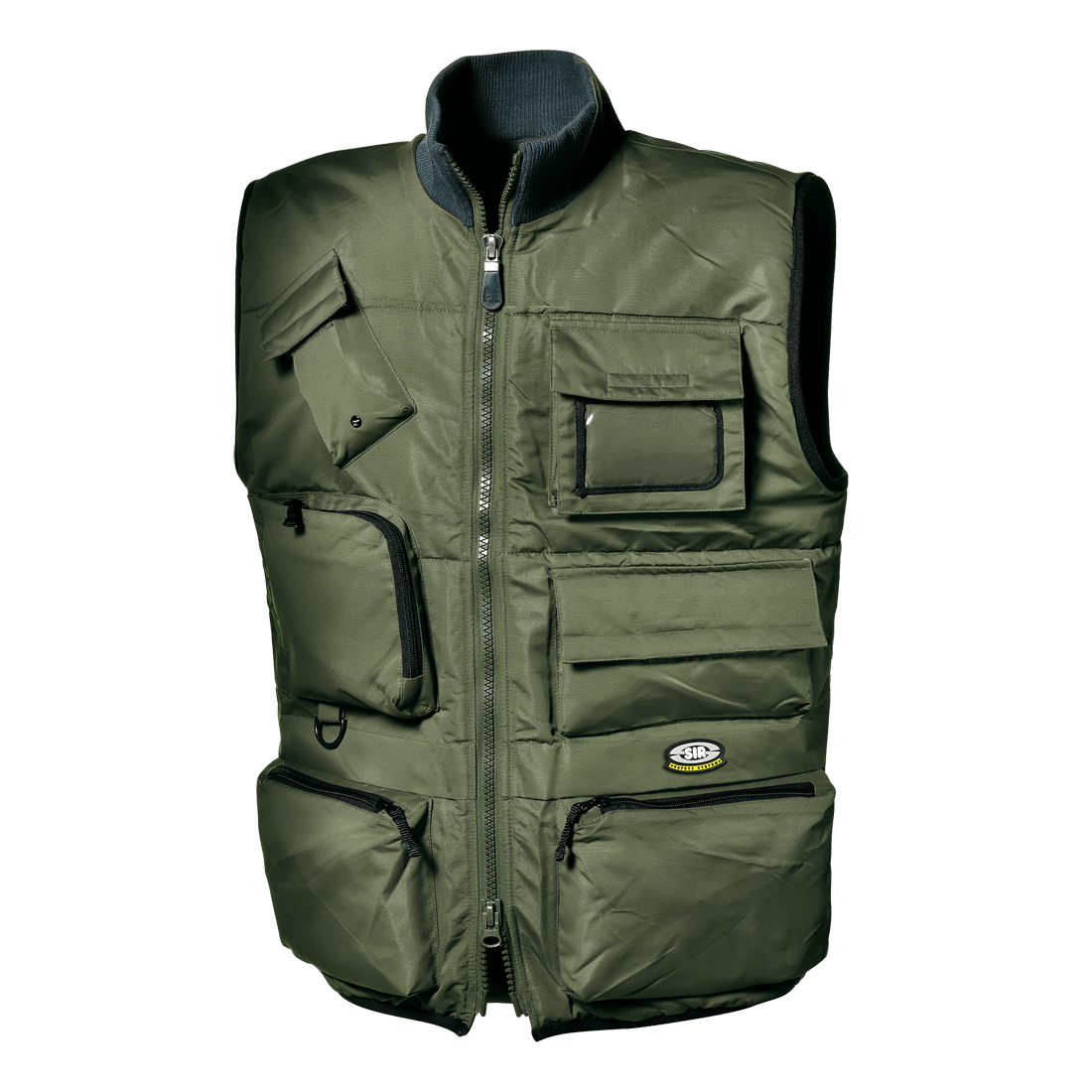 多口袋背心,外層是100%C-Tex透氣滌綸面料。填充克重200g/m2。雙向拉鏈前襟,針織領,右上側手機袋,左上側尼龍搭扣翻邊口袋,有可折疊證件袋,右側中間拉鏈口袋并帶一個D型環,左側中間尼龍搭扣翻蓋口袋,兩側底部兩個拉鏈立體口袋。- 有多個功能實用的口袋。- 特別適合需要連續活動的工作。- 溫暖透氣。該產品的設計和制造符合89/686/EEC的基本健康和安全要求。它被列為PPE等級I。