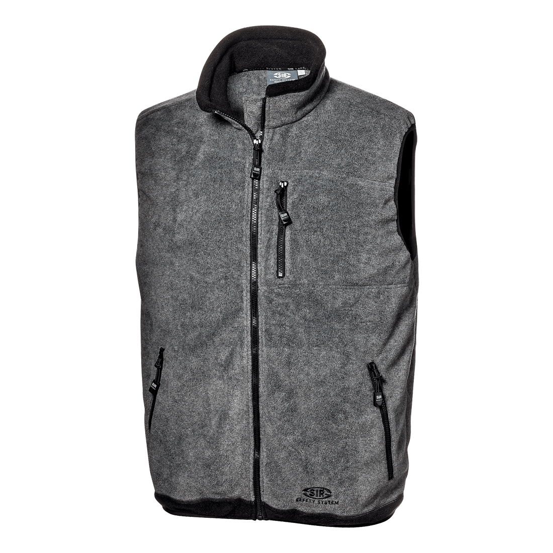 Bodywarmer in 100% polyester fleece, 300 g/m2, with concealed anti-tangle zipper closure, side pockets and chest pocket with zipper closure. Collar, waistband and elastic cuffs trims in black colour. Inner pockets.