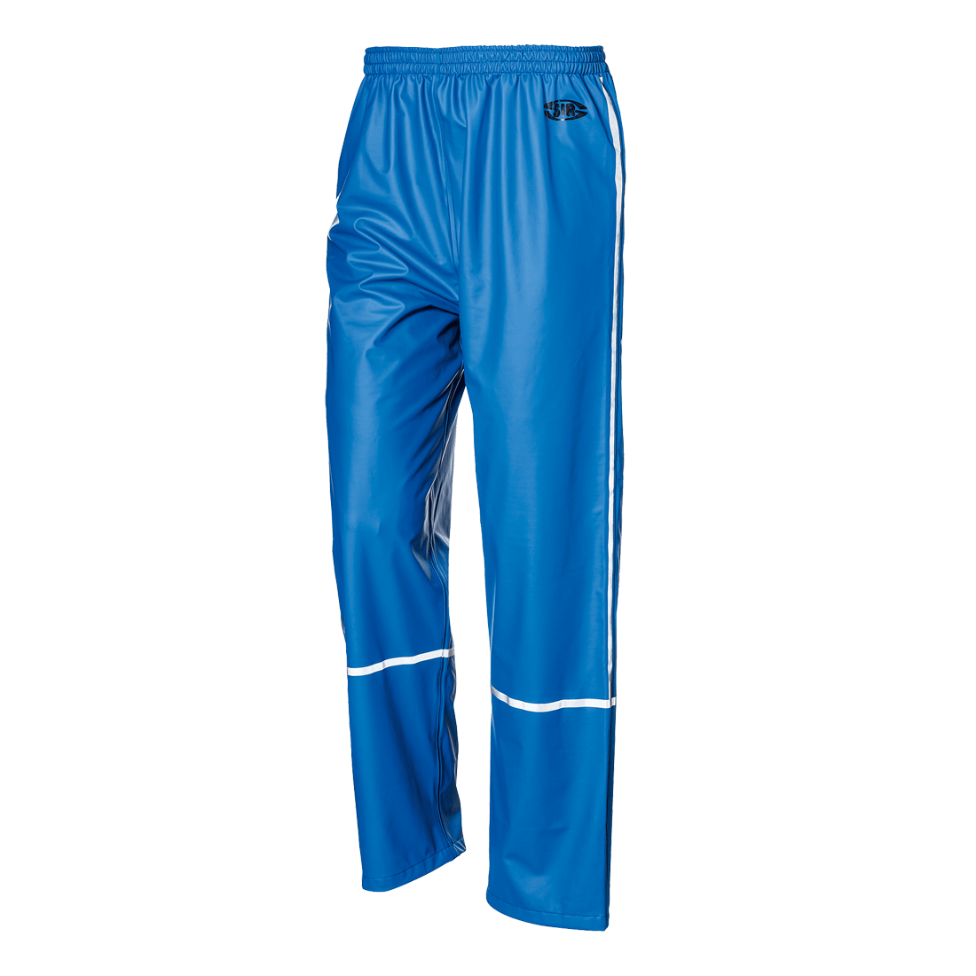Waterproof and breathable trousers in Wonderflex fabric, with elastic waistband, narrow reflective strip on the sides and below the knee area.