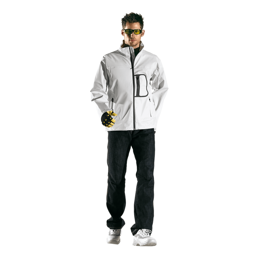 Waterproof, elastic and breathable, ergonomically styled. With foldaway hood adjustable by drawstring, adjustable waistband, Velcro adjustable cuffs, side pockets and chest pocket with water resistant zipper closure.