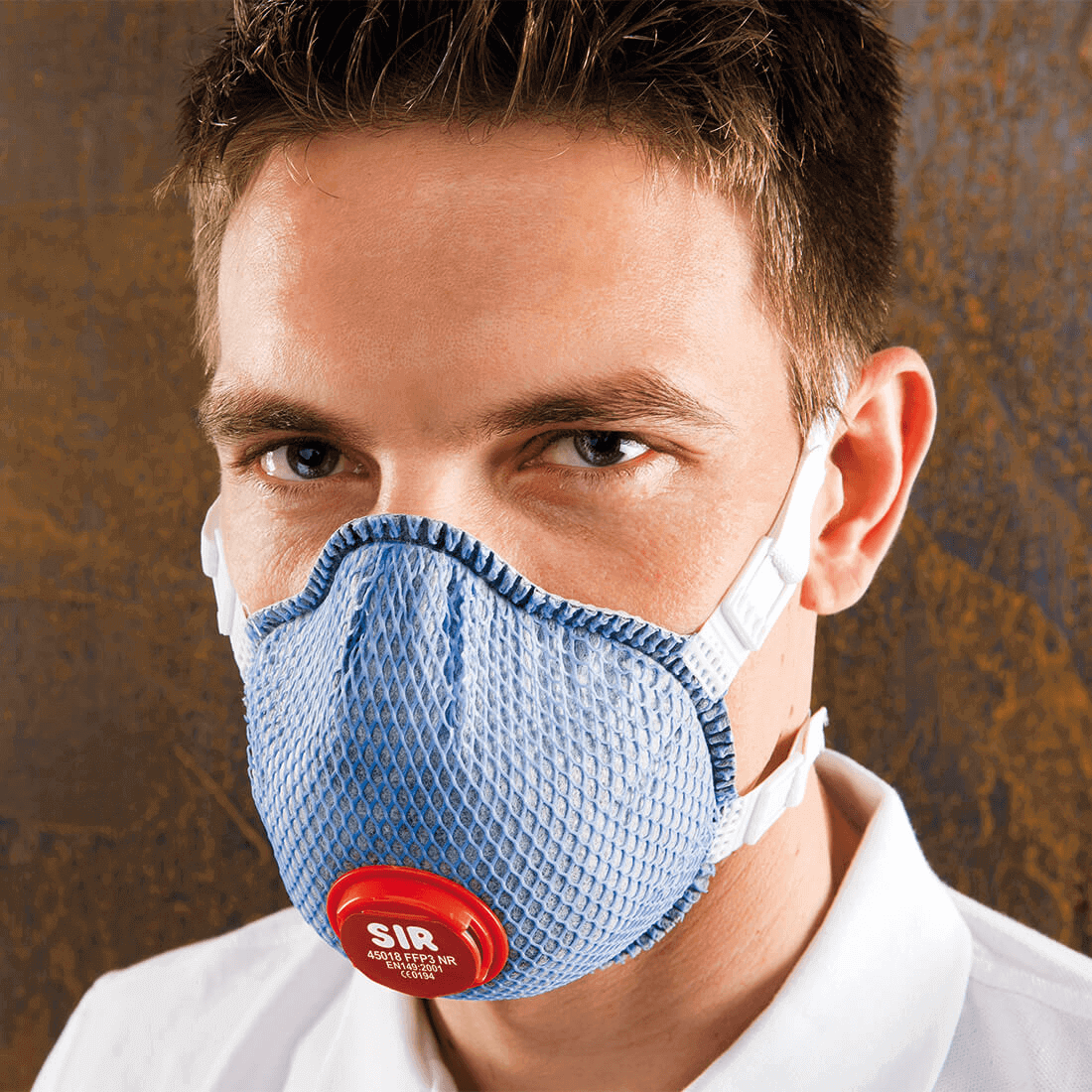 High-efficiency disposable respirator. With activated carbon layer. With exhalation valve. Suitable for use in polluted environments, as with aerosol and asbestos, with a high level of toxicity up to 50 times the TLV. Pak of 5 pieces.