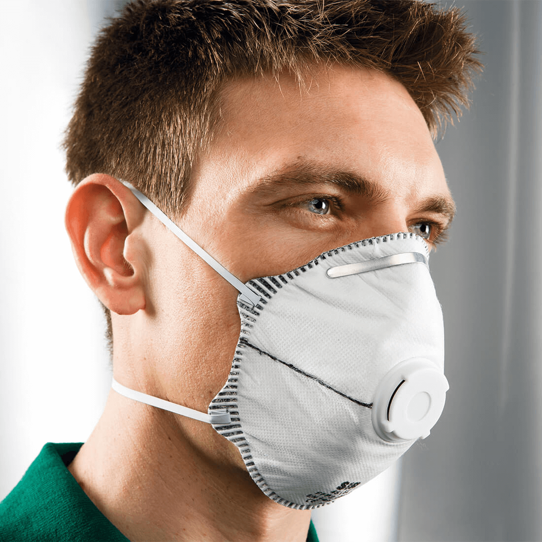 Disposable round semi-rigid respirator with head straps and exhalation valve. Provided with activated carbon layer. Suitable for medium toxic environments, up to 12 times the TLV. Pack of 10 pieces.