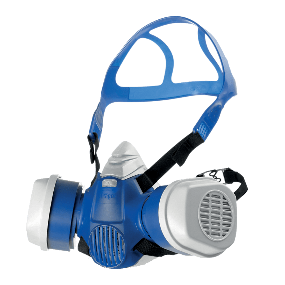 Twin filter half-mask with bayonet connection made of TPE (polymer foam), optimal fit with glasses and perfectly stable thanks to its self-centering and adjustable retention system. Model suitable for all needs. The mask consists of a head harness in soft plastic material with smooth edges and four elastic straps adjustable in length, to ensure a perfect fit for every type of face. A unique two-point bayonet connector allows for an even weight distribution and guarantees a wide field of vision.