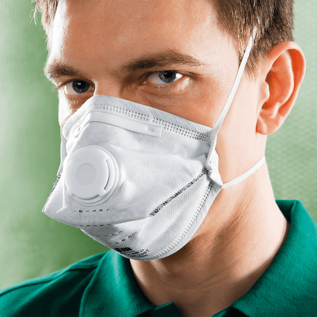 Disposable respirator individually wrapped. With activated carbon layer and exhalation valve. Suitable for use in the presence of medium levels of dust pollution up to 12 times the TLV. Pack of 20 pieces.
