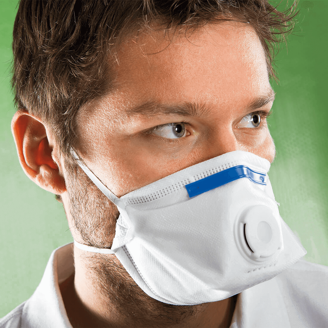 Individually wrapped disposable respirator, with exhalation valve. Recommended for use in heavy polluted environments with the presence of aerosol or asbestos up to 50 times the TLV. Pack of 20 pieces.