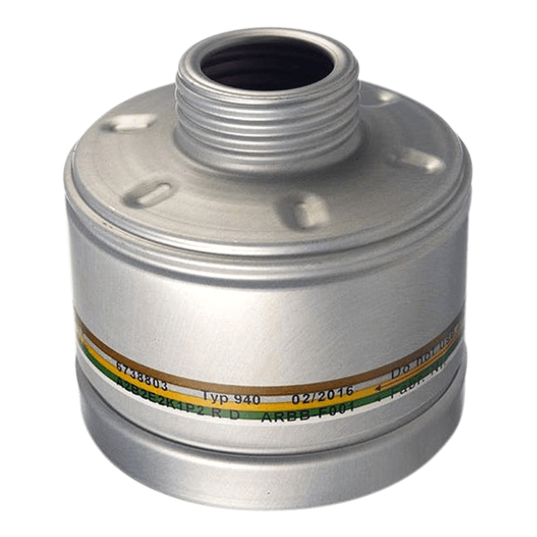 Combined Dr?ger Filter 940 – A2 B2 E2 K1 P2 R D. Suitable against vapours and organic gases (e.g. solvents) with boiling point above 65°C; gases and inorganic vapours (e.g. chlorine, hydrogen sulphide, hydrocyanic acid); sulphur dioxide, hydrochloric acid; ammonia and dusts.