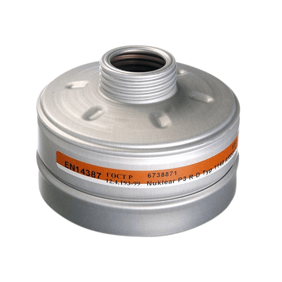 Special Dr?ger Filter 1140 – Reaktor P3 R D. Suitable against vapours and inorganic gases (e.g. solvents) with boiling point above 65°; dusts; radioactive iodine, including radioactive iodomethane.