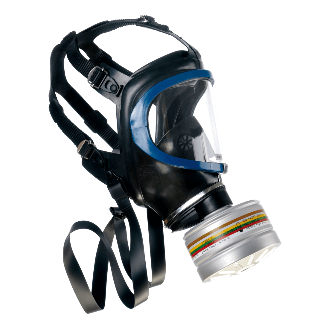 Full-face mask in EPDM rubber in black, equipped with standard screw attachment EN 148 for screw filters. Mask body in extremely soft rubber.