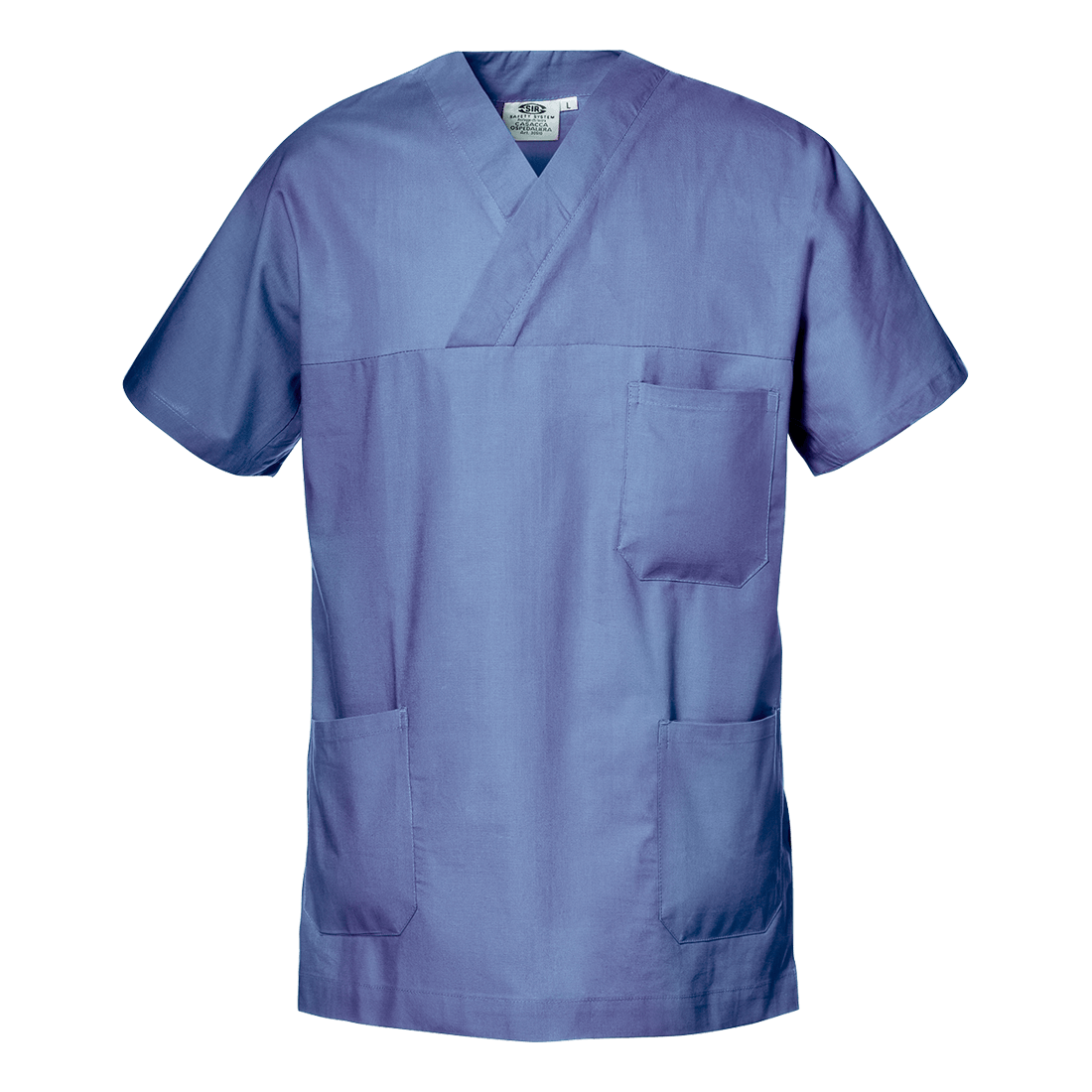Cardio scrub top - European Directive 93/42 concerning medical devices - made of 16/24 sanfor, 100% cotton, weight 190 gr/m2. Features chest pocket and two lower pockets. Customized upon request.