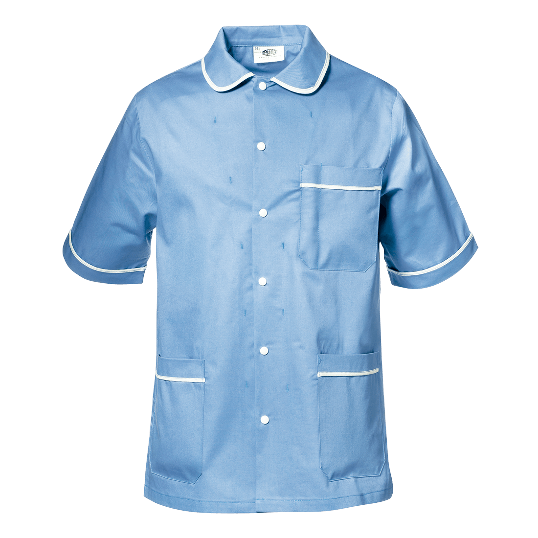 Coat made of 100% sanfor gabardine cotton, 190 g/m2, snap button closure, rounded collar, two pockets and a chest pocket with a pen holder.