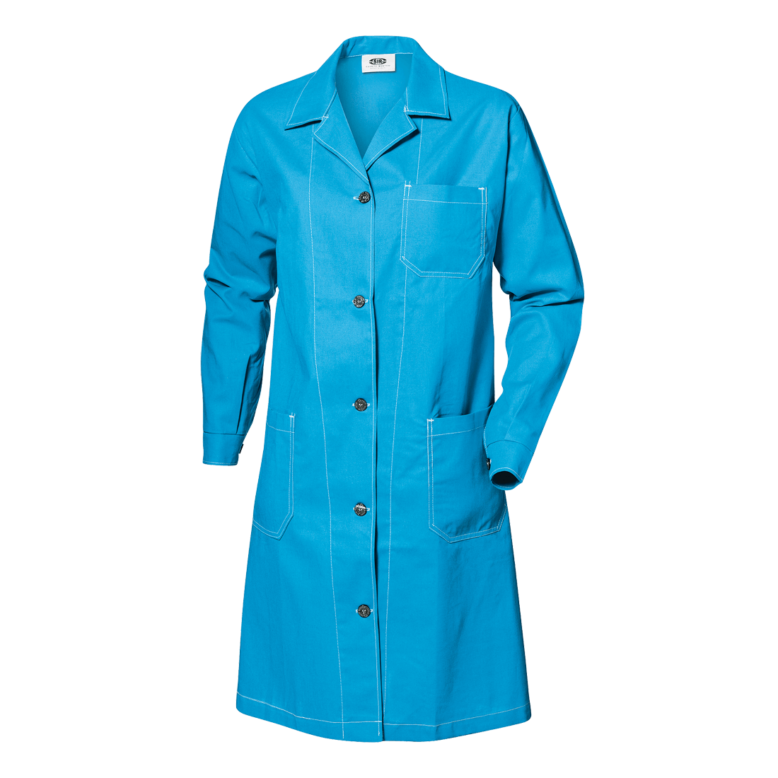 Ladies' coat made of cloth 20/24, 100% sanforized cotton, 120 g/m2; model for women with five button closure, two side pockets, a chest pocket and buttoned cuffs.