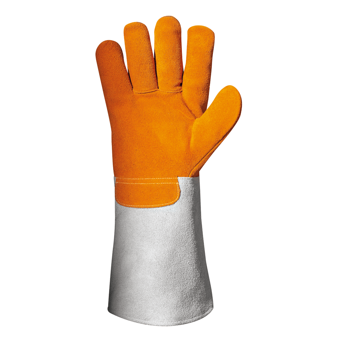 Glove made of heat resistant split leather specific for welding with Kevlar? seams. Lining: heat resistant cotton. Cuff: 16 cm split leather with wrist protection.