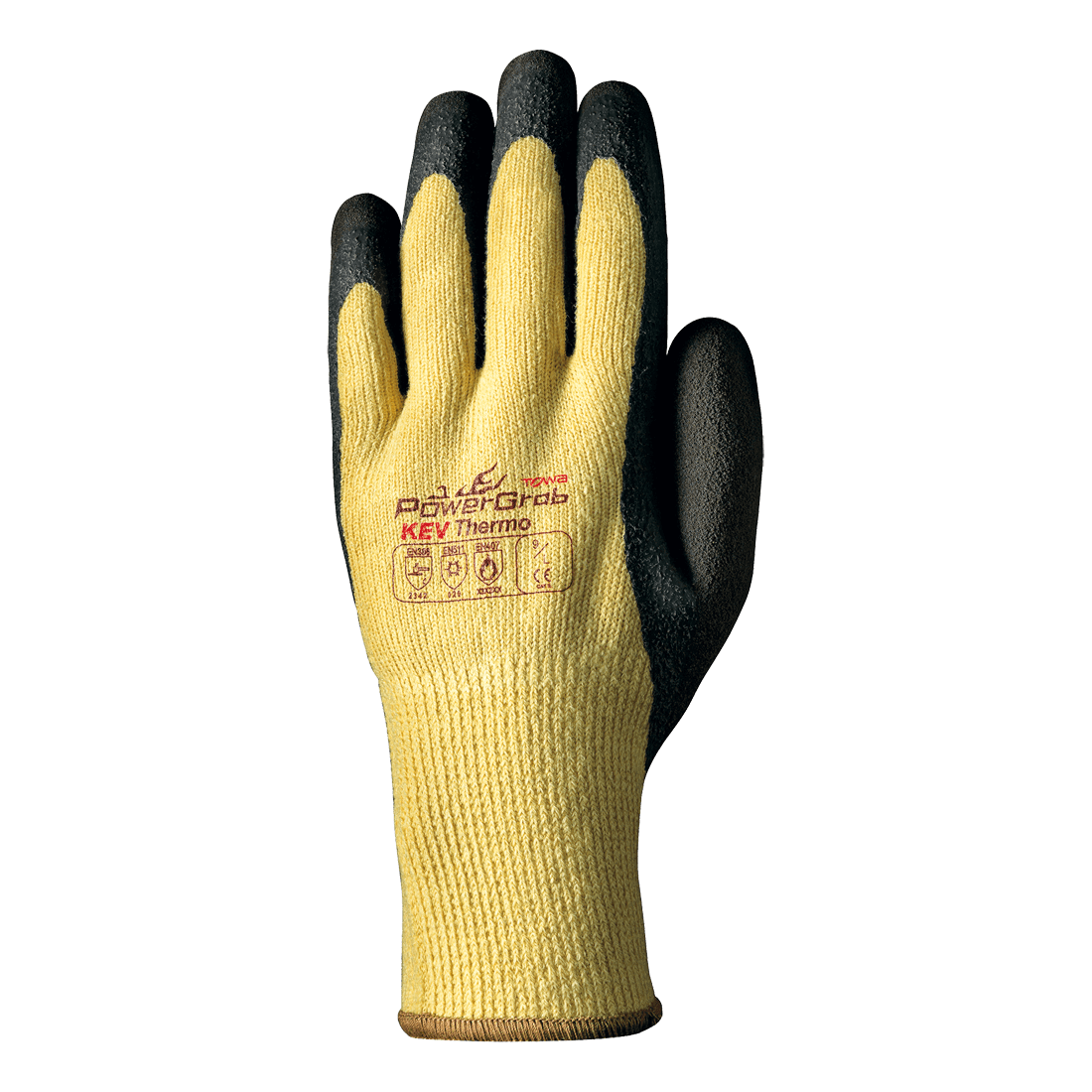 Glove made of heavy Kevlar knit with plush lining. Finish: micro-rough anti-slip latex. Cuff: elastic knit.