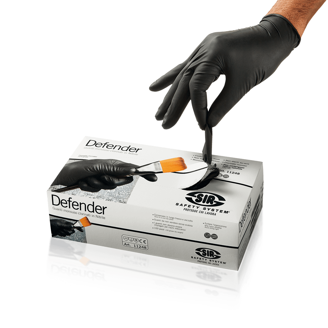 Disposable glove made of nitrile AQL 1,5 Inner: non-powdered, chlorinated. Finish: texturized fingers. Box: 100 pcs.