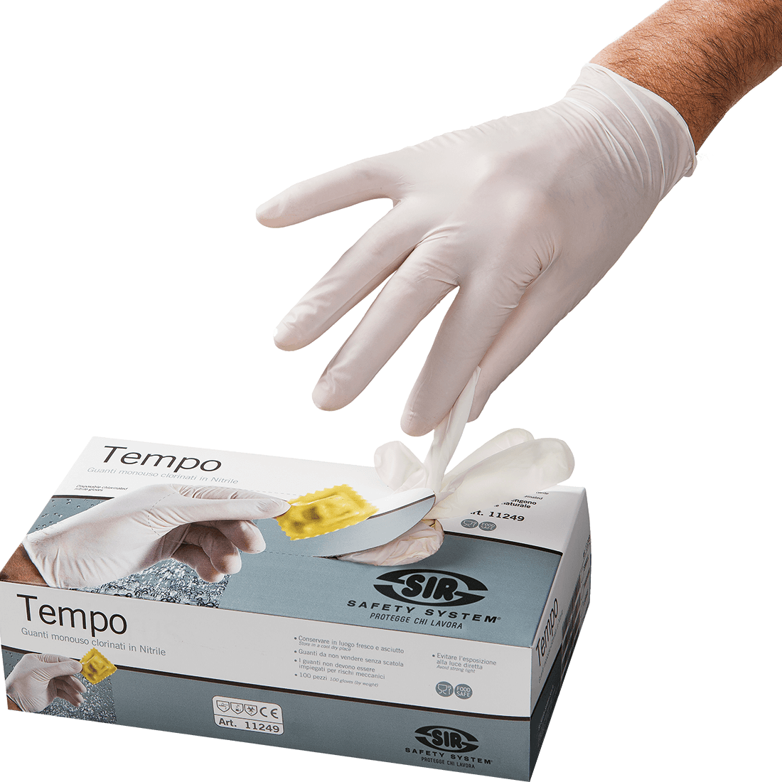 一次性手套由丁腈AQL1.5制成。 內里:無粉,氯化。 表面:粗糙。 包裝:100只/盒。- 適用于食品加工行業。 - 優異的靈巧度和觸感,極佳的貼合度和舒適性。 - 良好的耐化學性。 該產品的設計和制造符合89/686/EEC的基本健康和安全要求,它被列為PPE等級III。