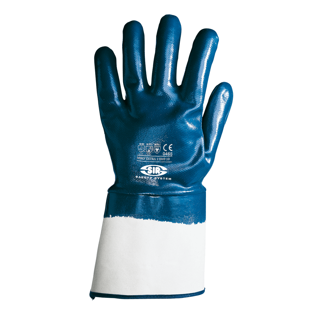 Glove made of heavy cotton knit. Finish: abrasion resistant NBR coating, anti-oil on palm and back. Cuff: 12 cm cotton cloth.