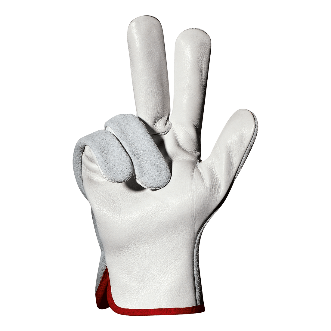 Glove made of grain cowhide. Back: split leather with elastic. Cuff: driver.