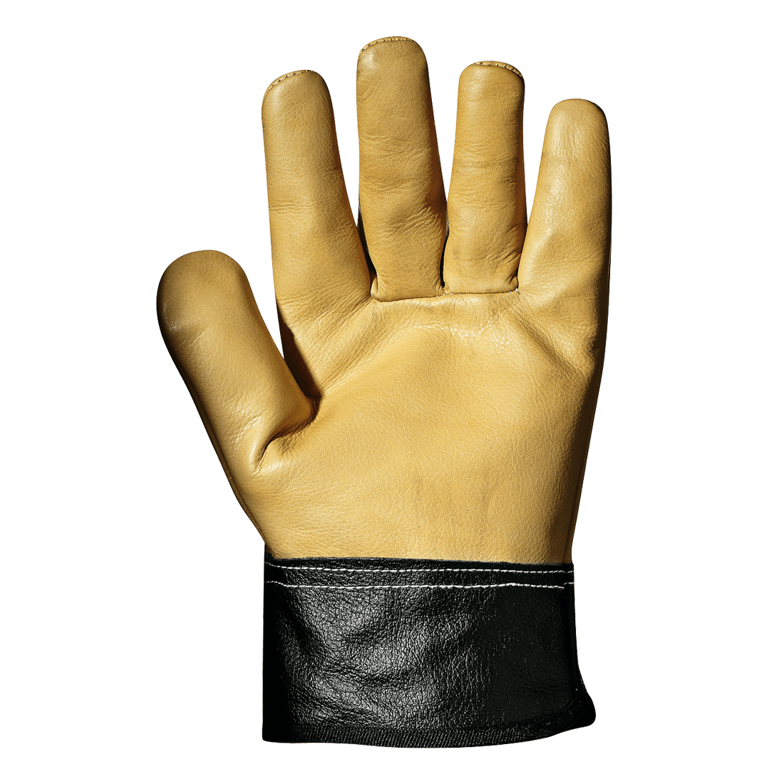 Glove made of grain cowhide, with Dynastop puncture proof lining on palm and fingers. Leather cuffs. The glove was designed for all the situations that require high protection against sharp objects (such as syringes and needles).