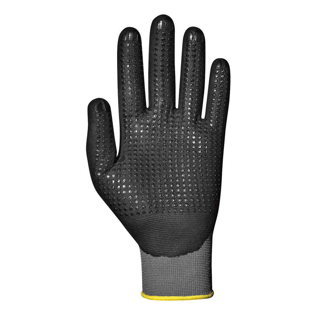 手套由尼龍針織面料制成。 涂層:丁腈/PU復(fù)合發(fā)泡涂層,手掌點(diǎn)塑,背面3/4涂層。 袖口:彈性針織袖口。 - 出色的抓握力和靈巧度。 - 良好的機(jī)械性能。 - 適度的油脂物質(zhì)也能適用。 - 無接縫設(shè)計(jì)和高透氣性保證了高舒適度。該產(chǎn)品的設(shè)計(jì)和制造符合89/686/EEC的基本健康和安全要求,它被列為PPE等級(jí)II。