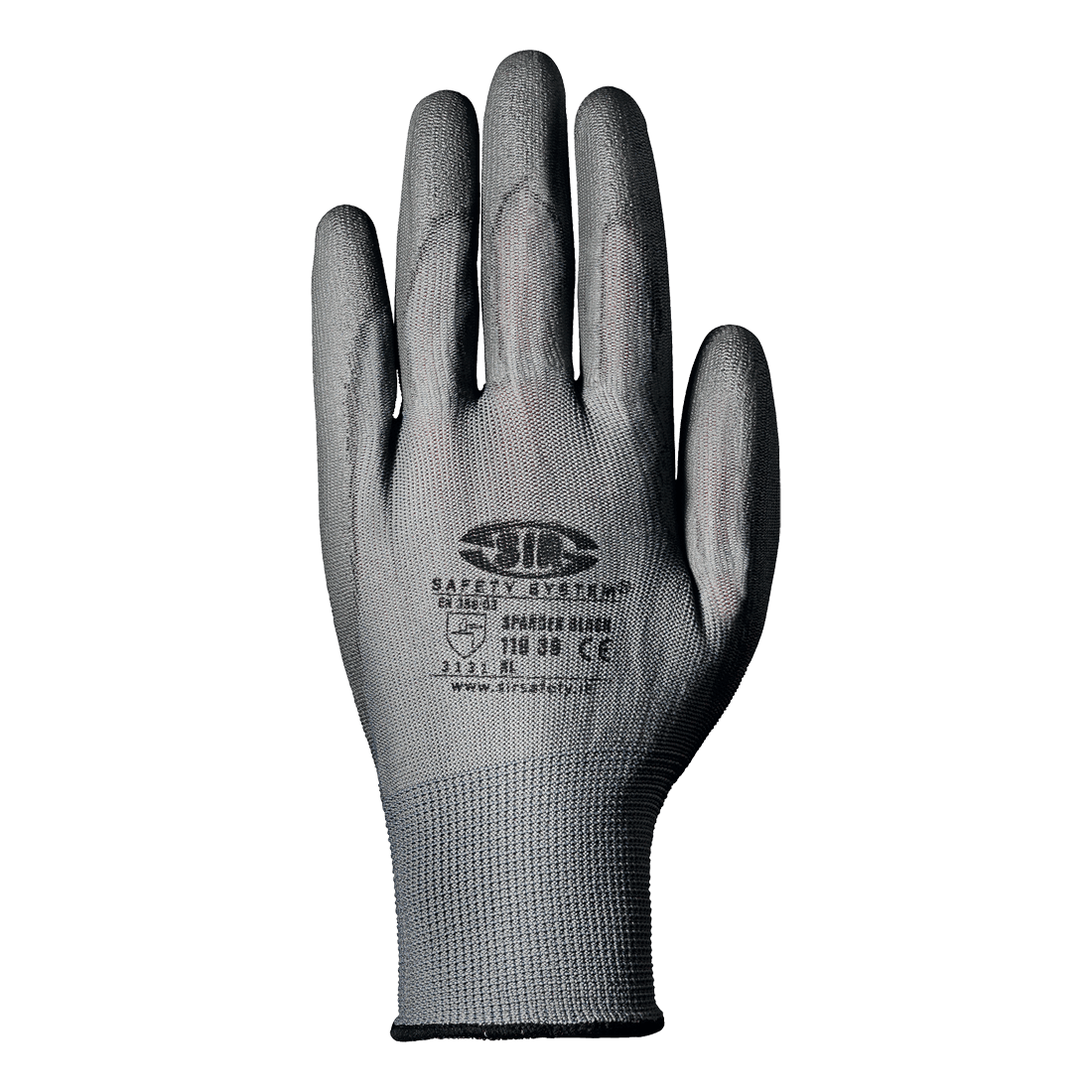 手套由超薄尼龍針織面料制成。 涂層:手掌和指尖PU防滑涂層。 袖口:彈性針織袖口。 - 出色的抓握力和靈巧度。 - 良好的機械性能。 - 適度的油脂物質也能適用。 - 無接縫設計和高透氣性保證了高舒適度。該產品的設計和制造符合89/686/EEC的基本健康和安全要求,它被列為PPE等級II。