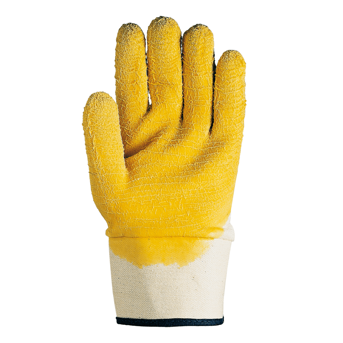 Glove made of cotton cloth. Finish: wear-and-tear resistant rubber. Cuff: cotton.