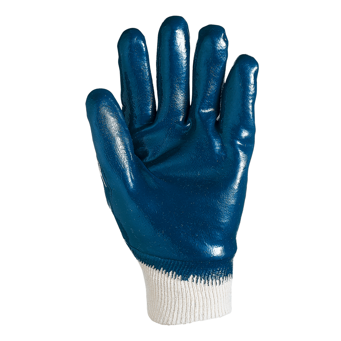 Glove made of heavy cotton knit. Finish: wear-and-tear resistant NBR coating on palm and back. Cuff: elastic cotton knit.