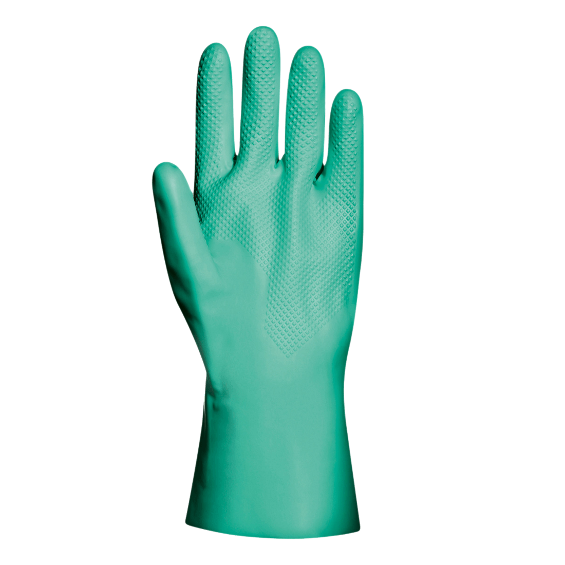 Glove made in nitrile, length: 31 cm. Lining: tricot knit. Finish: roughened finish.