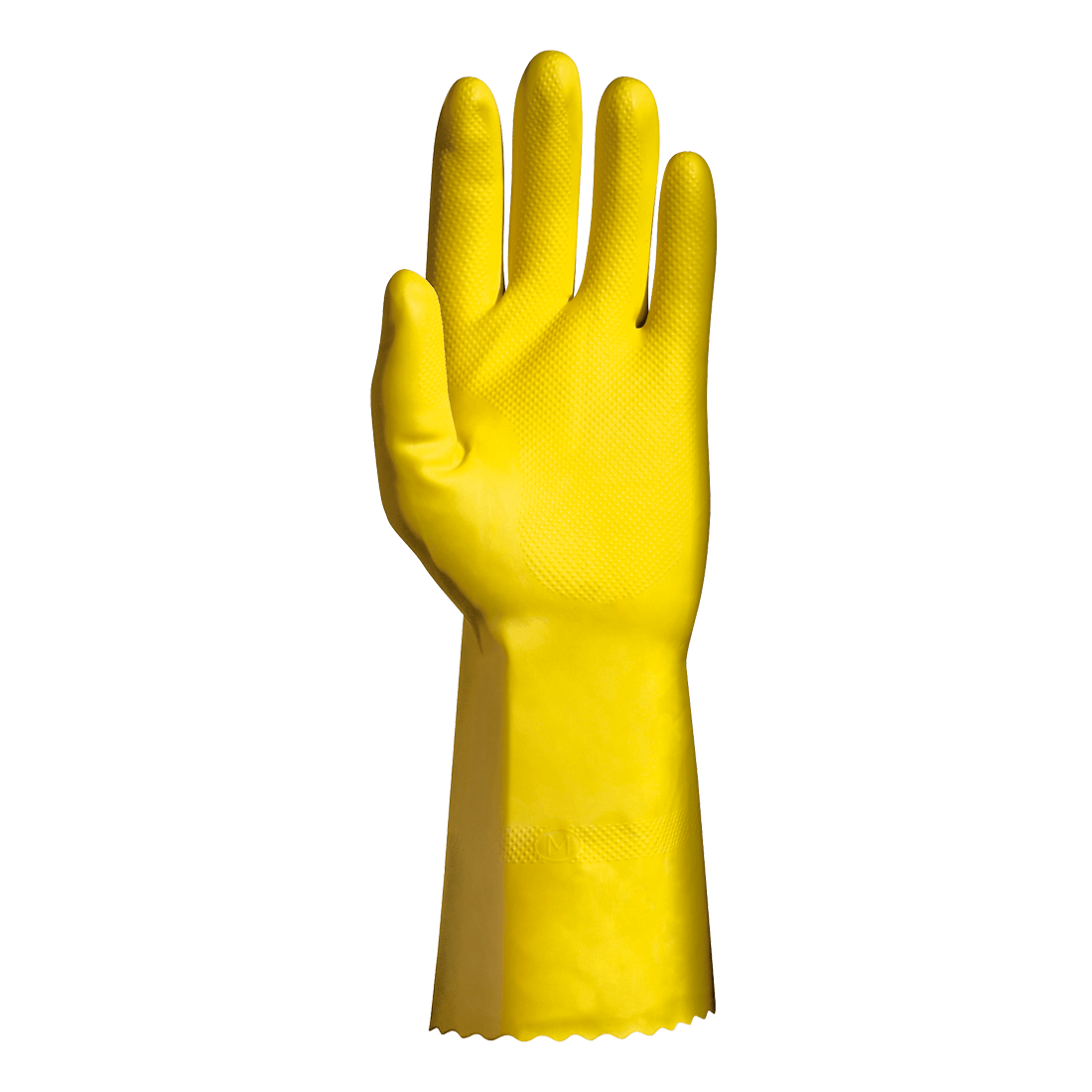 Glove in rubber latex 0.42 mm, length 30 cm. Lining: flock-lined as sponge. Finish: roughened finish.