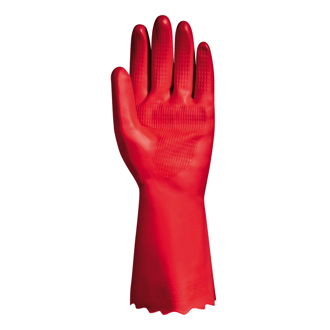 Glove made of PVC, length 30.5 cm. Lining: flock-lined. Finish: roughened finish.