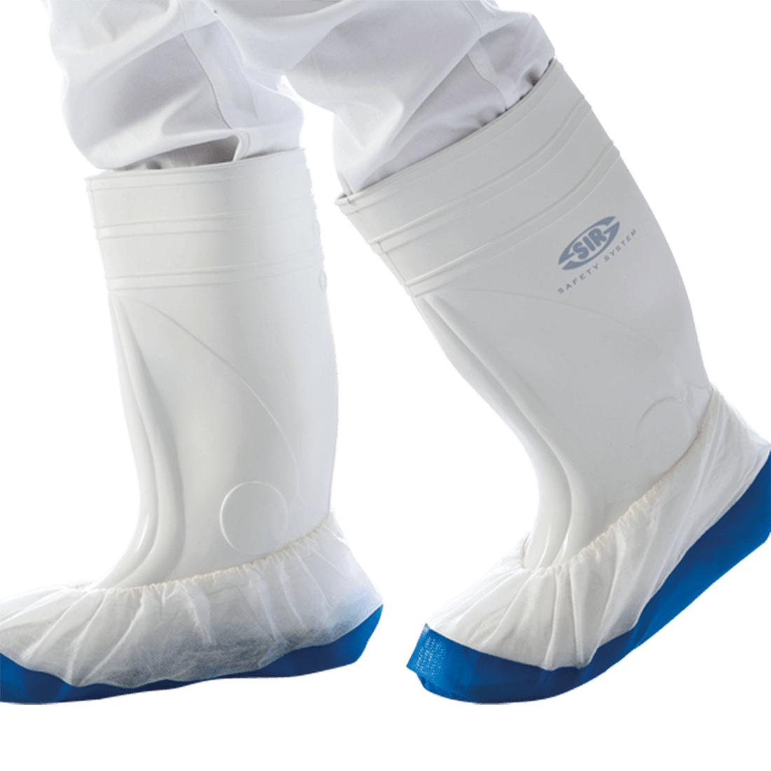 Shoe covers in reinforced polypropylene with water resistant sole, 17x40 cm. Pack of 100 pieces.