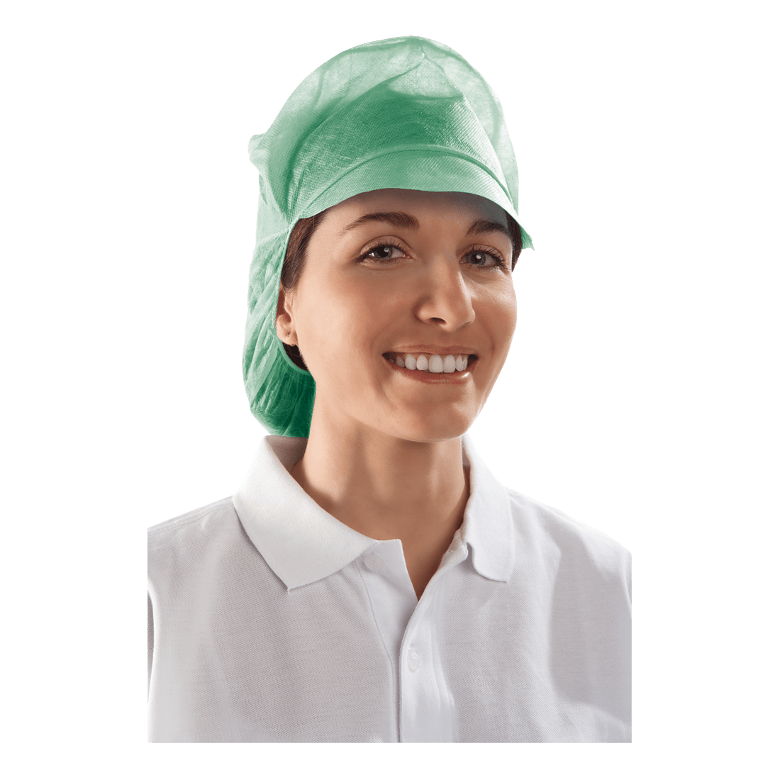 Women's cap in polypropylene with hairnet. Pack of 500 pieces.
